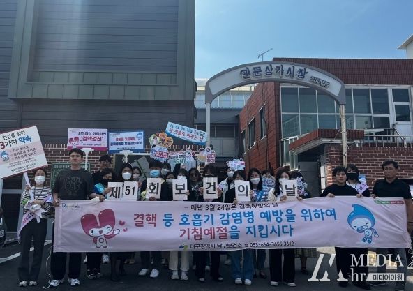 미디어아워 김성연 기자 | 대구광역시 남구는 지난 3일, 지역 대표 전통시장인 관문시장, 영선시장을 찾아 시장 상인회와 함께 남구보건소 직원 30여 명이 참여한 가운데 감염병 예방을 위한 홍보 캠페인을 진행했다고 6일 밝혔다.