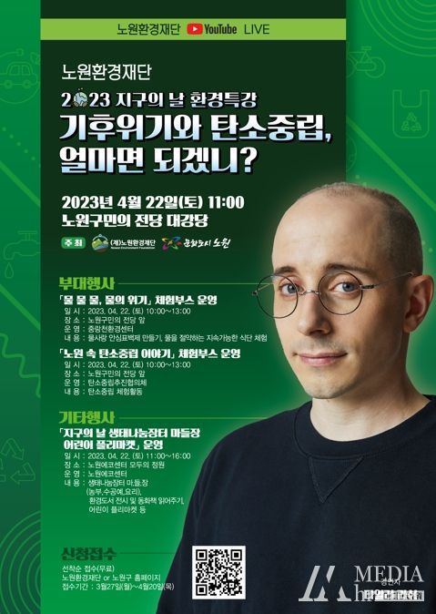 미디어아워 진금하 기자 | 서울 노원구가 오는 22일, 지구의 날을 맞아 방송인 타일러 라쉬의 무료 특강 등 다양한 행사를 개최한다고 밝혔다.