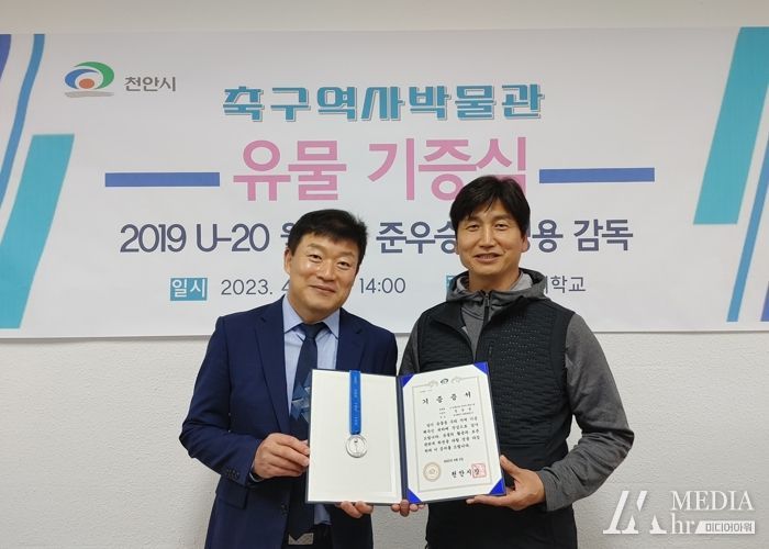 미디어아워 이호민 기자 | 천안시는 지난 5일 경북 경산시 소재 경일대학교 정정용 교수 연구실에서 축구역사박물관 건립을 위한 유물기증식을 개최했다고 7일 밝혔다.