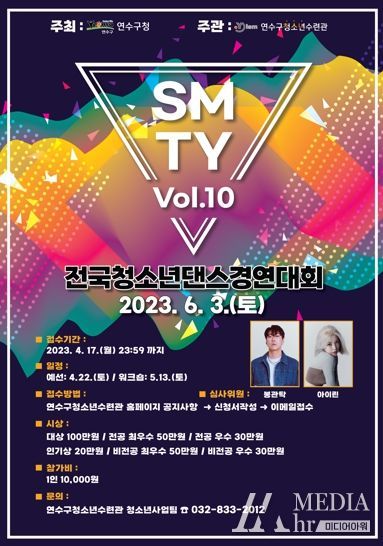 미디어아워 이호민 기자 | 연수구청소년수련관은 오는 17일까지 ‘전국청소년댄스경연대회[SMTY Vol. 10]’ 참가자를 모집한다.