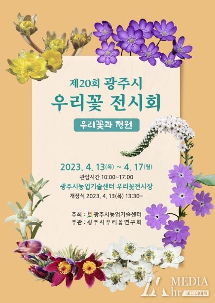 미디어아워 진금하 기자 | 포근한 봄바람에 마음까지 부풀어 오르는 요즘, 멀리 가지 않아도 다양한 우리꽃을 즐길 수 있는 '제20회 광주시 우리꽃 전시회'가 오는 13일 개장식을 시작으로 17일까지 5일간 광주시농업기술센터 우리꽃전시장에서 개최된다.