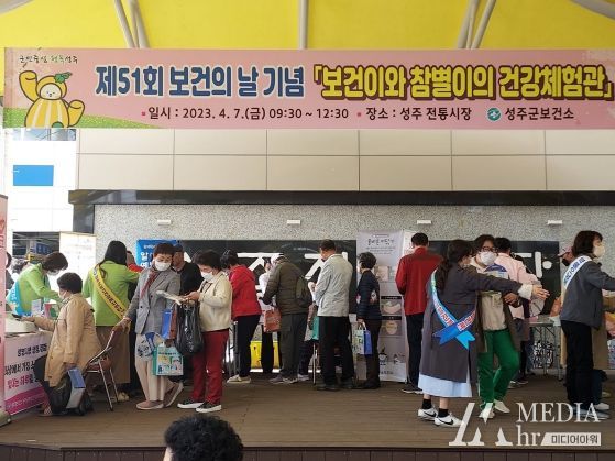미디어아워 김성연 기자 | 성주군은 '제51회 보건의 날'을 맞이하여 성주전통시장에서는 '보건이와 참별이의 건강체험관'을 운영하고, 보건소에서는 보건공무원을 위한'걱정 밀고, 행복당기고'란 주제로 힐링교육을 실시했다.