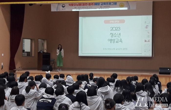 미디어아워 이호민 기자 | 지난 6일 법무부 청소년범죄예방위원 수원지역 권선지구위원회는 호매실 중학교에서 760여 명의 청소년을 대상으로 학교폭력 및 약물오남용 예방 교육을 실시했다.