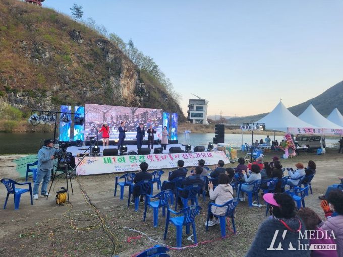 미디어아워 진금하 기자 | 한국전통가요진흥협회가 주관하고 문경시가 후원한‘제1회 문경벚꽃나들이 전통가요제’가 4월 9일(일), 오후 6시 문경읍 온천지구 신북천변에서 3백여 명이 참석한 가운데 성황리에 열렸다.