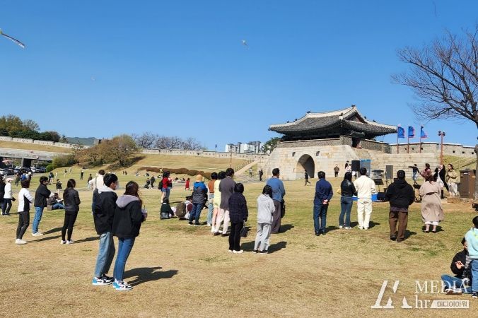미디어아워 진금하 기자 | 수원시 팔달구는 지난 8일 봄을 맞아 창룡문과 ‘팔달산에 뜬 달’ 광장에서 총 2회에 걸쳐 ‘팔달구 우리동네 버스킹’ 행사를 진행했다.