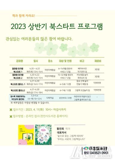 미디어아워 이호민 기자 | 천안시 두정도서관은 ‘2023년 북스타트 상반기 프로그램’을 시작한다고 12일 밝혔다.