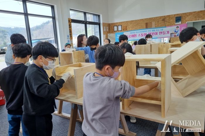 미디어아워 이호민 기자 | 화순군청소년문화의집은 지난 4월 1일 화순군에 거주하고 있는 청소년 50명을 대상으로 ‘목공체험으로 스툴형 책꽂이 만들기’를 성황리에 마쳤다.