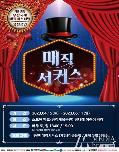 미디어아워 박미영 기자 | 부산시와 (사)부산국제매직페스티벌조직위원회(집행위원장 강열우)는 오는 4월 15일부터 6월 11일까지 매주 주말마다 스포원 파크 꿈나래 어린이극장에서 '매직 서커스[봄]'을 개최한다고 밝혔다.