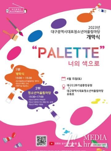 미디어아워 박미영 기자 | 대구광역시가 주최하고 대구청소년활동진흥센터가 주관하는 ‘대표 청소년어울림마당 개막식’이 4월 15일(토) 오후 3시, 2.28기념중앙공원에서 열린다.