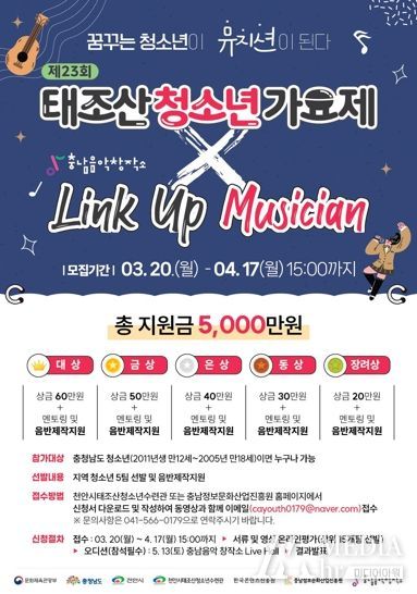 미디어아워 이호민 기자 | 천안시태조산청소년수련관과 충남정보문화산업진흥원은 제23회 태조산청소년가요제 참가자를 오는 17일까지 모집한다고 밝혔다.