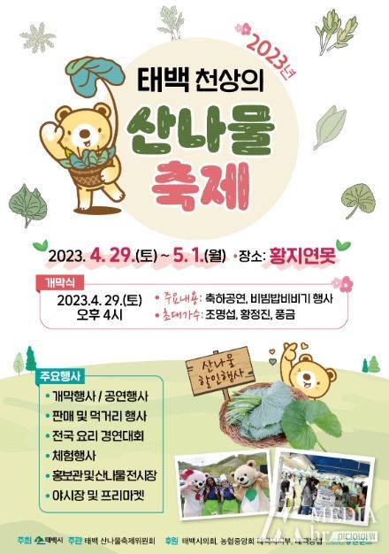 미디어아워 진금하 기자 | 태백시는 산나물 제철을 맞이해 오는 4월 29일부터 5월 1일까지 3일간 황지연못 및 태백문화광장 일원에서 2023년 태백 천상의 산나물 축제를 개최한다.