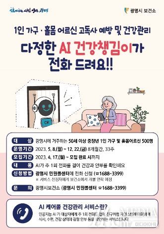 미디어아워 박미영 기자 | 명시가 중장년 건강관리사업인 ‘AI 케어콜’ 서비스 참여자 500명을 17일부터 선착순 모집한다.