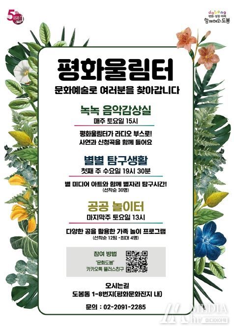 미디어아워 진금하 기자 | 도봉구는 4월부터 평화울림터 상설 프로그램을 운영해 구민들에게 체감형 문화예술 향유의 기회를 제공하고 있다.