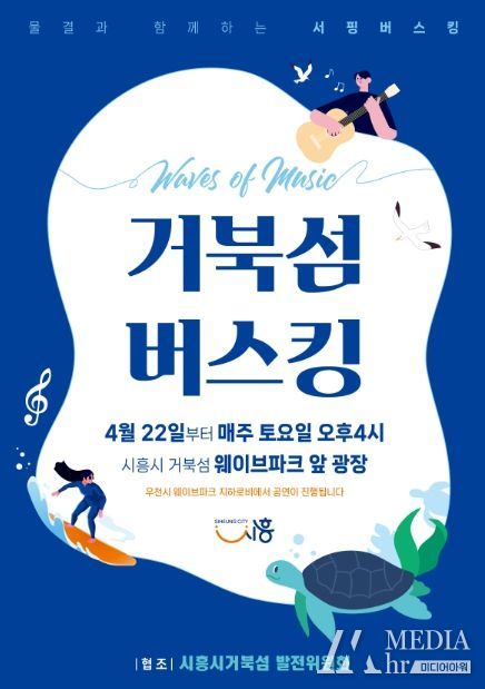 미디어아워 진금하 기자 | 시흥시가 거북섬 상권 활성화를 위해 시민 및 관광객의 토요일 감성을 가득 채워줄 버스킹(거리공연)을 진행한다. 오는 4월 22일을 시작으로 6월 24일까지 10주간 매주 토요일 오후 4시에 거북섬(MTV) 웨이브파크 앞 광장에서 물결과 함께하는 ‘거북섬 버스킹 Waves Of Music’을 선보인다.