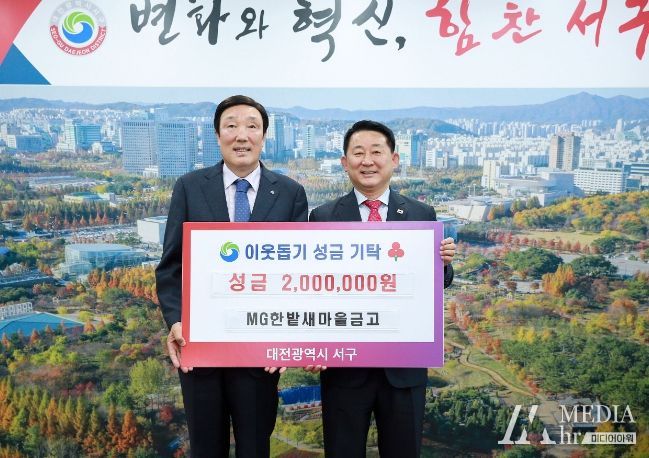 미디어아워 최지나 기자 | 대전 서구는 3일 구청 갑천누리실에서 한밭새마을금고와 이웃돕기 성금 기탁식을 가졌다.