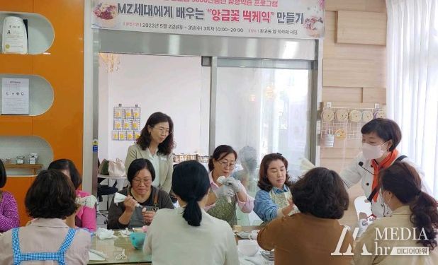 미디어아워 최지나 기자 | 이천시 관고동 평생학습센터는 “5060 신중년 프로그램 MZ세대에게 배우는 앙금 꽃 떡 케이크 만들기” 프로그램을 2일 지역주민 30명을 대상으로 운영했다.