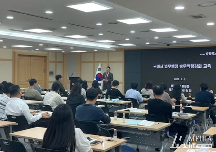 미디어아워 최지나 기자 | 구미시는 3일 14:00 시청 3층 상황실에서 법제·소송 업무 담당자 80여명이 참석한 가운데'2023년 법무행정 역량강화 교육'을 실시했다.