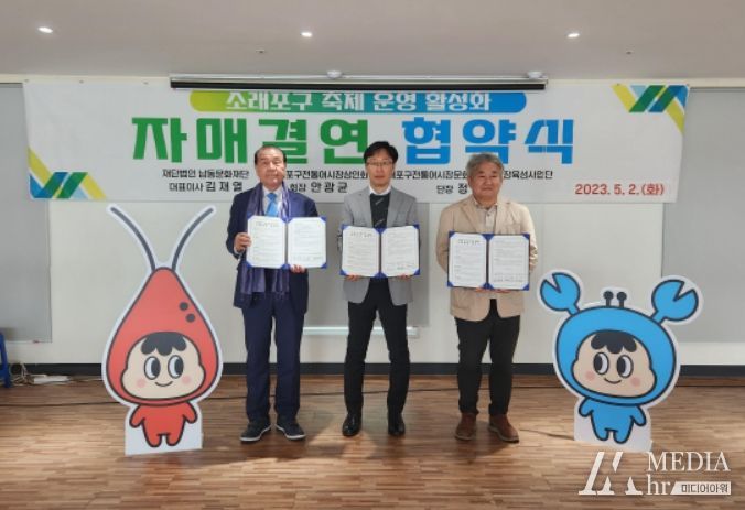 이번 협약식에는 김재열 남동문화재단 대표이사, 안광균 소래포구 전통어시장 상인회장, 정경훈 소래포구 전통어시장 문화관광형 시장육성사업단장 등이 참석했다.