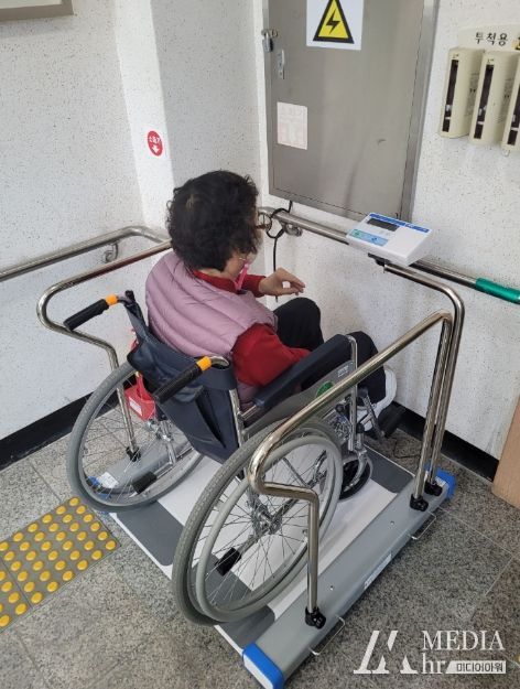 이번에 복지관에 설치된 휠체어 전용 체중계는 휠체어 사용 장애인이 스스로 체중을 측정할 수 있으며, 보행에 어려움이 있는 신체기능 장애인도 편리하게 체중을 측정할 수 있다.