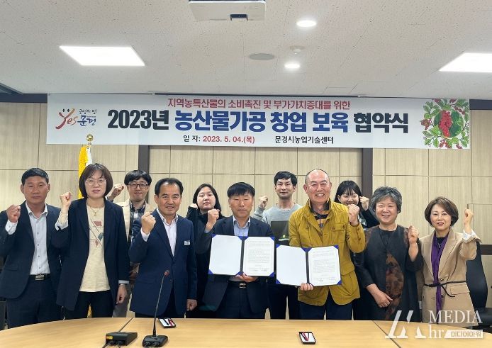 미디어아워 진금하 기자 | 문경시농업기술센터는 5월 4일 지역특화작목인 문경오미자 가공 창업 활성화를 위하여 농업회사법인(주) 남안골과 농산물가공 창업 보육 협약식을 체결했다.