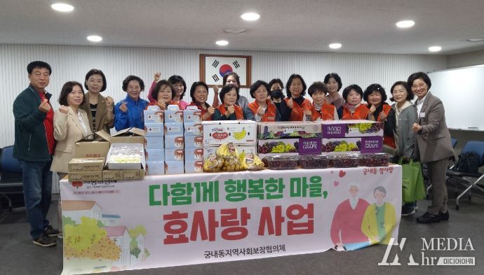 미디어아워 진금하 기자 | 군포시 궁내동 지역사회보장협의체에서는 어버이날을 즈음하여 5월 4일 저소득층 85세 이상 장수 어르신 30분에게 효사랑 선물을 전달했다.