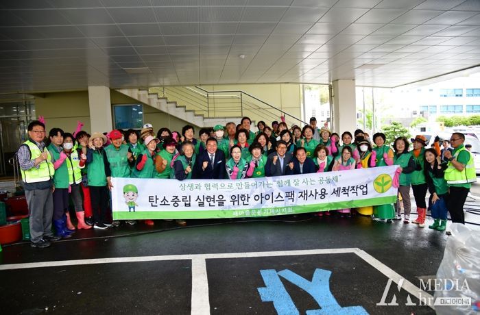 미디어아워 이호민 기자 | 거제시는 새마을운동 거제시지회와 지난 4일 하청면 주민센터에서 2023년 상반기 아이스팩 수거 재활용 세척작업을 진행했다.