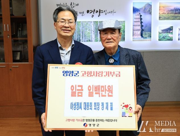미디어아워 최지나 기자 | 야성정씨 대종회 정재칠 회장이 5월 4일 영양군을 방문하여 고향사랑기부금 100만 원을 기탁했다.