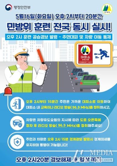 미디어아워 이호민 기자 | 익산시는 국가적 비상대응역량을 강화하기 위해 오는 16일 전국 동시 민방위 훈련을 실시한다.