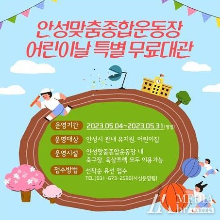 미디어아워 진금하 기자 | 안성시시설관리공단은 어린이날을 기념하여 관내 유치원, 어린이집을 대상으로 안성맞춤종합운동장을 5월 한 달 동안 평일(월~목)에 한하여 무료로 대관을 지원한다고 밝혔다.
