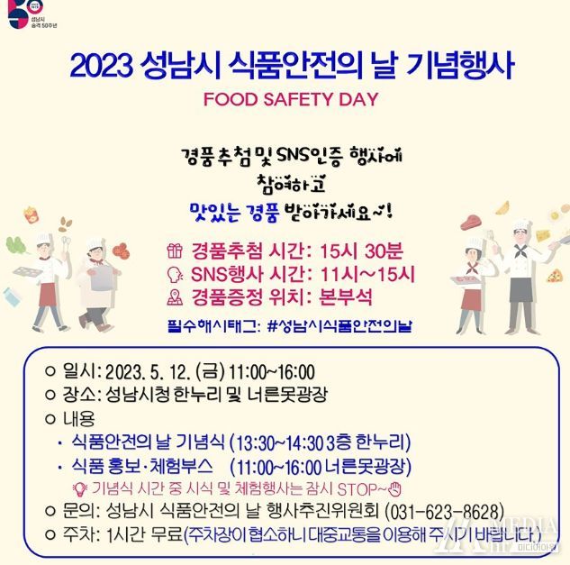 미디어아워 진금하 기자 | 성남시는 ‘제22회 식품안전의 날(5.14)’을 앞둔 오는 5월 12일 시청 곳곳에서 관련 행사를 연다.