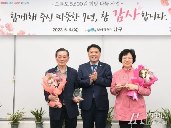 미디어아워 조연정 기자 | 부산광역시 남구에서는 지난 4일‘오륙도 5,600원 희망나눔 사업’장기후원자 2명에게 감사패를 수여했다.