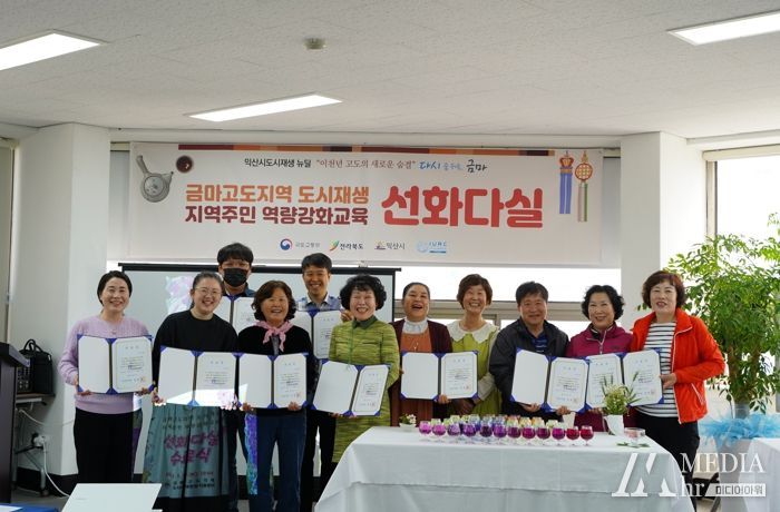 미디어아워 이호민 기자 | 익산시는 지난 9일 도시재생 뉴딜사업 일환으로 진행한 ‘선화다실’3기 심화교육 수료식을 금마고도지역 도시재생현장지원센터에서 진행했다.