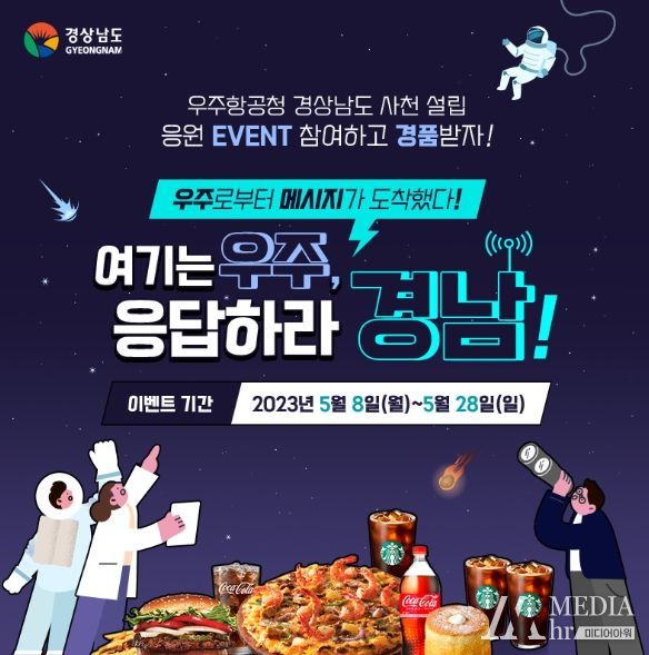 미디어아워 최지나 기자 | 경상남도는 오는 28일까지 우주항공청의 설치 및 운영에 관한 특별법(이하 ‘우주항공청 특별법’) 통과와 경상남도 사천 우주항공청의 조속한 설치를 응원하고자 온라인 이벤트를 진행한다고 밝혔다.