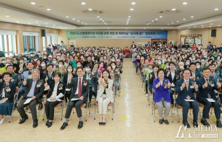 미디어아워 최지나 기자 | 이천시노인종합복지관은 8일 어버이날을 기념하여 “감사해孝 힐링축제” 및 관장취임식을 개최했다. 이번 축제는 어버이 은혜에 감사하는 마음을 담아 지역사회 어르신들 약 500여명을 모시고 관내 큰마당에서 진행됐다.