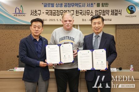 미디어아워 김성연 기자 | 서울 서초구는 9일 공정무역 활성화 및 공정무역 실천을 위한 협력체계 구축을 위해 국제공정무역 한국사무소와 업무협약을 체결했다.