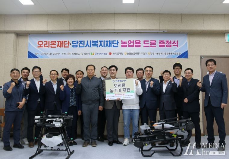 미디어아워 진금하 기자 | 오리온재단은 9일 당진시농협해나루조합공동사업법인을 방문하여 원예농산물(감자) 수급안정화를 위해 5,000만원 상당의 농업용 드론 2대를 당진시복지재단에 기탁했다.