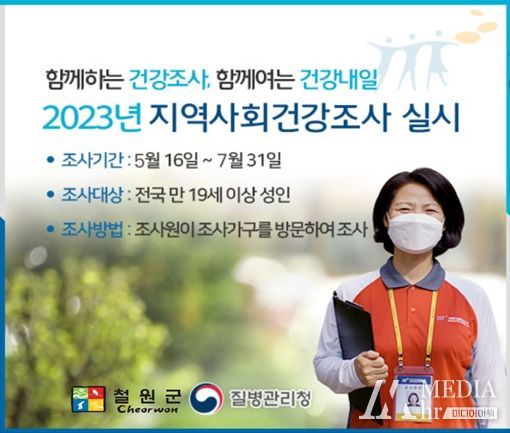 미디어아워 조연정 기자 | 철원군은 5월 16일부터 7월 31일까지 만 19세 이상 878명의 가구원을 대상으로‘지역사회건강조사’를 실시한다.