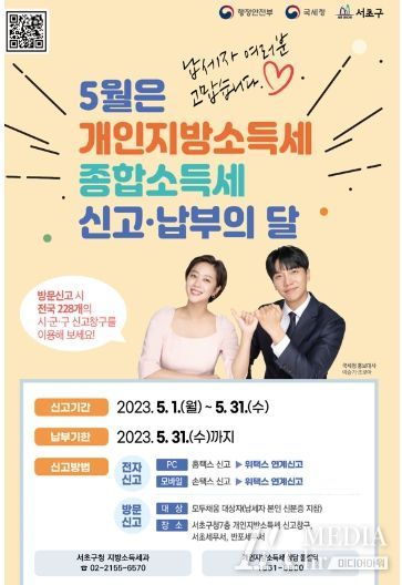 미디어아워 진금하 기자 | 서울 서초구는 5월 종합소득세 및 개인지방소득세 신고 납부의 달을 맞아 오는 31일 까지 편리하게 신고할 수 있는 신고창구를 운영한다고 밝혔다.