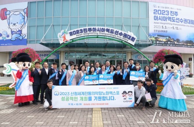 미디어아워 최지나 기자 | 경남 (재)산청세계전통의약항노화엑스포조직위원회는 지난 9일 2023진주아시아역도선수권대회 열기로 가득한 진주실내체육관을 찾아 아시아 각국 선수단을 포함한 경기 관계자, 관람객을 대상으로 엑스포 홍보를 추진했다고 밝혔다.