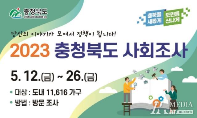 미디어아워 김성연 기자 | 충청북도와 11개 시군에서는 2023년 5월 12일부터 26일까지 15일간 '2023년 충청북도 사회조사'를 실시한다.