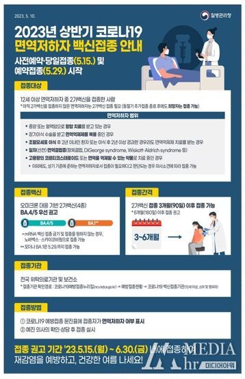 미디어아워 이호민 기자 | 거제시 보건소는 질병관리청 ‘23년 상반기 코로나19 고위험군 접종계획 발표에 따라 오는 5월 15일부터 ‘23년 상반기 코로나19 고위험군 접종을 실시할 예정이라고 밝혔다.