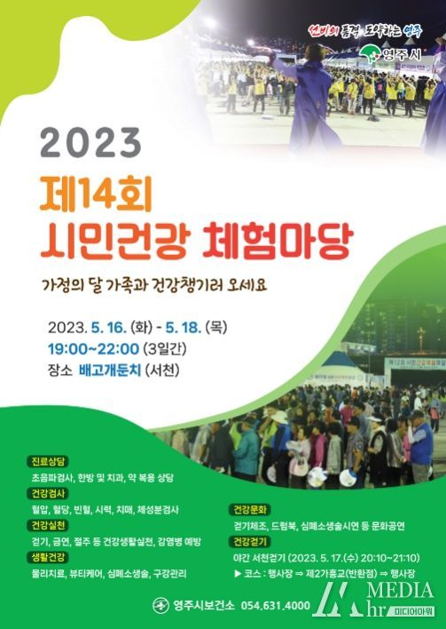 미디어아워 최지나 기자 | 영주시는 16일부터 18일까지 3일간 서천 배고개둔치 주차장에서 ‘제14회 시민건강 체험마당’을 연다.