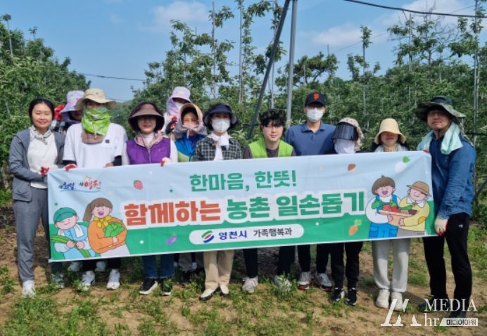 미디어아워 최지나 기자 | 영천시 가족행복과는 11일 일손 부족으로 어려움을 겪고 있는 매산동 사과 재배 농가를 방문해 일손을 보탰다.