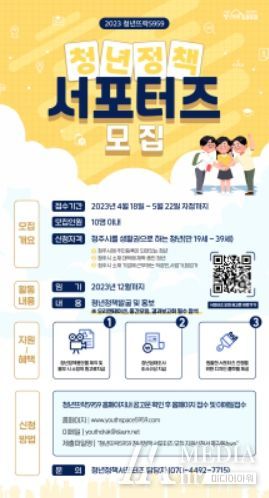 미디어아워 김성연 기자 | 청주시 청년센터인 ‘청년뜨락5959’는 청주시 청년의 정책 참여 확대와 정책 효과성 증진을 위한 ‘2023년 청년뜨락5959 청년정책 서포터즈’를 모집한다.