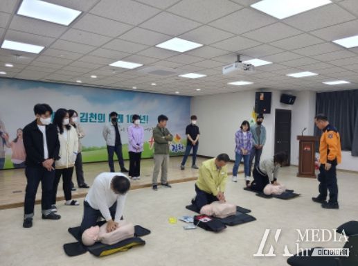 미디어아워 김성연 기자 | 김천시 대신동은 5월 11일 오전 10시 30분 동 행정복지센터 2층 회의실에서 직원과 기간제근로자 25명을 대상으로 심폐소생술 응급처치를 교육했다.