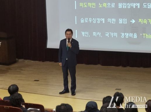 황 교수는 한 가지 주제를 가지고 50시간을 몰입하면 모든 문제를 해결할 수 있다며 사고력과 창의성을 최대한 끌어내며 최고의 나를 만나는 기회를 제공하는 몰입의 중요성을 강조해 청중들의 큰 호응과 관심을 받았다.