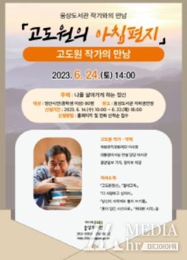 6월의 초청 작가는 '고도원의 아침편지'로 유명한 고도원 작가로 “나를 살아가게 하는 정신”을 주제로 6월 24일 토요일 오후 2시 웅상도서관 지하공연장에서 진행할 예정이다.