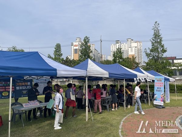 미디어아워 김성연 기자 | 경산시지역사회보장협의체는 가족분과 주관으로 10일 남천둔치 야외공연장에서 시민들을 대상으로'성평등인식개선 및 성‧가정폭력 추방 캠페인'을 했다.
