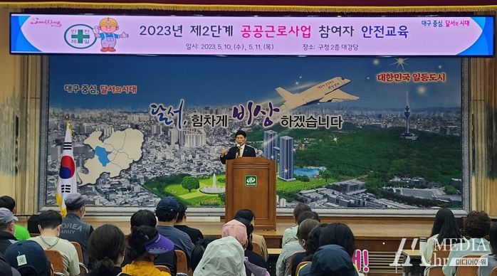 미디어아워 이호민 기자 | 대구 달서구는 10일, 11일 양일간 구청 2층 대강당에서 2023년 2단계 대구형 희망플러스 일자리사업(공공근로사업) 참여자 300명을 대상으로 안전보건교육을 실시했다고 밝혔다.