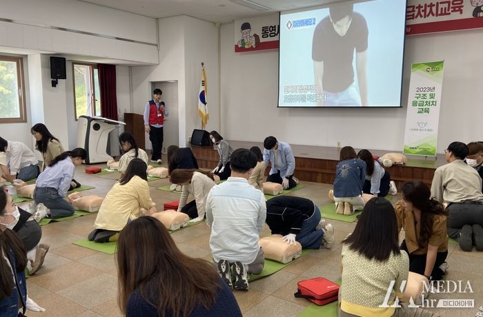 미디어아워 이호민 기자 | 통영시는 지난 5월 8일부터 11일까지 3회기에 나누어 보건소 직원 83명을 대상으로 심폐소생술 등 응급처치 교육을 실시했다.